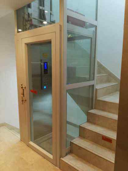 紧贴别墅电梯内墙